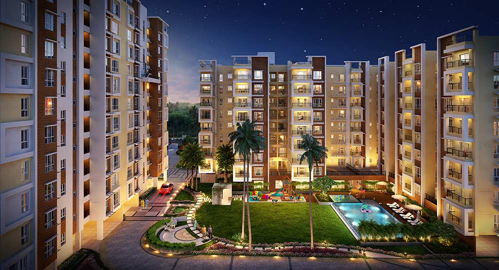 Nestled between a lake and the east Kolkata wetlands, One10 is located in the prime neighborhood of Newtown, Action Area 1. It features an Olympic length swimming pool with water slides, Nature Trail, Multi-sport Game Courts, Triple height Sports Arena, Centre for Extra-curricular activities, Montessori and Daycare.